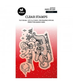 11 tampons transparents. A utiliser avec encreur et bloc acrylique. Dimensions de la planche : environ 10.5 x 14.5 cm.