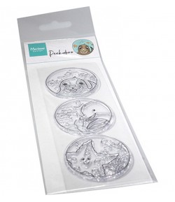 3 tampons transparents. A utiliser avec encreur et bloc acrylique. Dimensions : environ 4.8 cm.