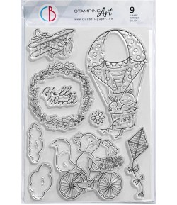 9 Tampons transparents. PS8098 - STAMPING ART CIAO BELLA A utiliser avec encreur et bloc acrylique. Dimensions de la planche : 15 x 21 cm. Tampons : Entre 1.7 et 8 cm
