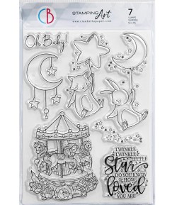 13 tampons transparents. A utiliser avec encreur et bloc acrylique. Dimensions de la planche : environ 10.5 x 15.5 cm.
