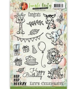 21 Tampons transparents. A utiliser avec encreur et bloc acrylique. JUNGLE PARTY - YCCS10070 Dimensions : Entre 1 et 8 cm