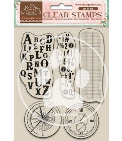 17 tampons transparents. A utiliser avec encreur et bloc acrylique. Dimensions : environ 1 à 9.5 cm.