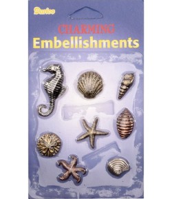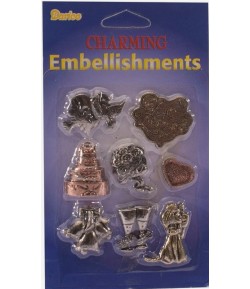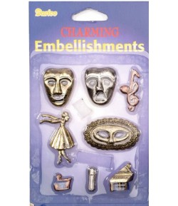 Lot de 10 charms en métal argenté. Dimensions : environ 5.5 cm.