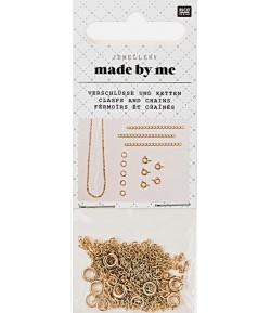 Sachet contenant 14 pièces en métal doré pour bijoux, composé de 5 fermoirs ressorts, 5 anneaux, 1 m de chaîne et 3 chaînes d'extension de 5 cm.