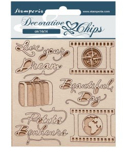 Assortiment de 48 embellissements en acétate coloré. Collection AMAZONIA de STAMPERIA by CRISTINA RADOVAN - DFLDCP03. Dimensions : entre 1.5 et 12 cm