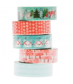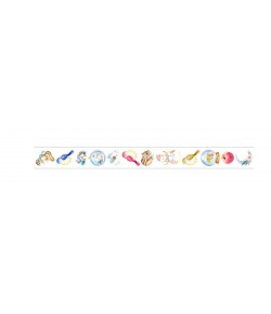 Lot de 3 rouleaux de masking tape de 5 mètres chacun et support décoré Gorjuss. Dimensions : environ 15 cm.