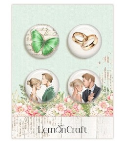 Lot de 4 embellissements ronds "button badge" adhésifs. Collection Daydream de Lemon Craft. Diamètre : environ 2.5 cm.