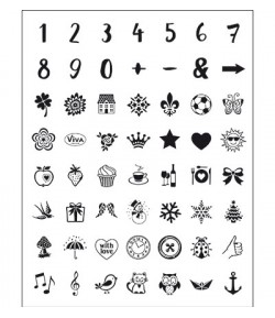 9 tampons transparent. A utiliser avec encreur et bloc acrylique. Dimensions : Entre 1 et 7 cm environ.