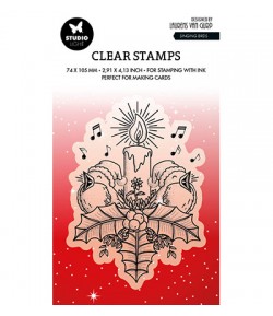 Tampon transparent. A utiliser avec encreur et bloc acrylique. Dimensions : environ 7 x 9.5 cm.