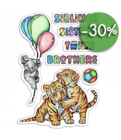8 tampons transparents. A utiliser avec encreur et bloc acrylique. Dimensions : environ 1.5 à 10 cm.