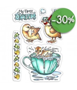 11 tampons en caoutchouc. A utiliser avec encreur et bloc acrylique. Dimensions de la planche : environ 12.3 x 16.6 cm.