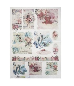 Papier de riz imprimé A4 - 21 x 29.7 cm Le papier de riz est un papier texturé, imprimé, utilisé pour la décoration de tous supports (bois, carton, zinc, verre...). Il est plus épais et donc plus résistant qu'une serviette en papier et conserve les qualités de transparence. A découper ou déchirer et coller avec la Colle Velo (spéciale papiers de riz)...