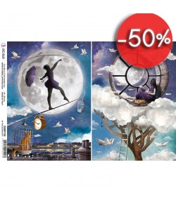 Feuille de papier double face (2 motifs) sans acide collection Voyage Extraordinaire de Jules Verne de Ciao Bella. 30.5 x 30.5 cm - 190 g/m2