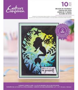 6 tampons transparents à utiliser avec encreur et bloc acrylique et 4 pochoirs en plastique souple. Cet ensemble est idéal pour créer de jolies scènes pour vos cartes. Dimensions du plus grand pochoir : environ 13.2 x 18.3 cm.