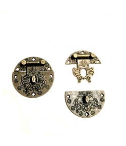 Fermeture en métal (couleur bronze) vendue à l'unité sans packaging de la marque "Atilolou". Idéale pour vos projets de cartonnage, scrap ou tout simplement pour embellir une boite en bois. Les vis sont fournies mais vous pouvez utiliser les attaches parisiennes (réf : 56818) pour les fixer. Dimensions : environ 5 x 4.2 cm.