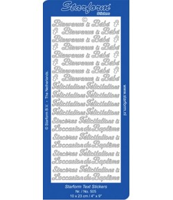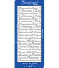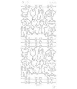 Motifs autocollants en papier avec détails argentés. Dimensions de la feuille : 10 x 23,5 cm.
