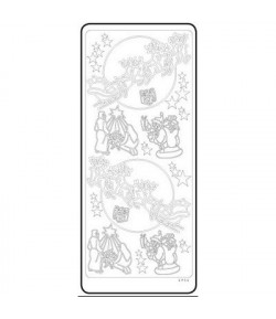 Motifs autocollants en papier avec détails argentés. Dimensions de la feuille : 10 x 23,5 cm.