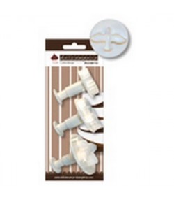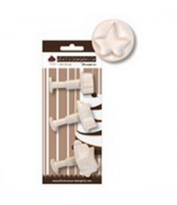 Set de 3 emporte-pièces "embosseur" en plastique avec bouton poussoir pour embosser et extraire vos découpes plus facilement. Tailles : 5 cm - 4 cm - 3.5 cm