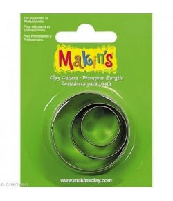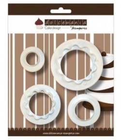 Set de 4 emporte-pièces "double" en plastique. Un côté rond et un côté rond festonné Dimensions : 2.5 cm, 3.2 cm, 4.3 cm, 5.5 cm