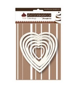 Set de 6 emporte-pièces coeur en plastique. Hauteur : de 2.5 à 10 cm. Largeur : de 3 x 10.5 cm.