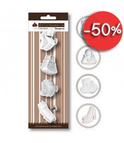 Set de 4 emporte-pièces "embosseur" en plastique avec bouton poussoir pour embosser et extraire vos découpes plus facilement. Motifs : ourson, coeur, oiseau, rose