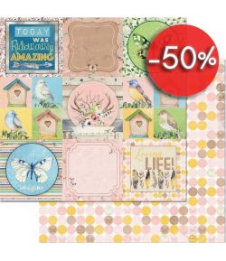 Papier Bo Bunny Collection Serendipity. Feuille de papier double face (2 motifs) sans acide. 30.5 x 30.5 cm - 195 g/m2