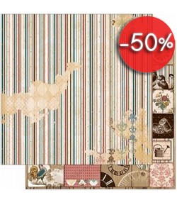 Papier Bo Bunny Collection Provence. Feuille de papier double face (2 motifs) sans acide. 30.5 x 30.5 cm - 195 g/m2