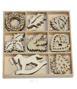 Lot de 13 boutons différents en bois coloré. 2 trous. Dimensions : environ 2.1 x 3 cm.