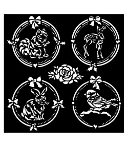 4 motifs identiques sur cette serviette. Dimensions serviette ouverte : 33 x 33 cm.