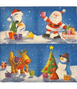 4 motifs identiques sur cette serviette cocktail. Dimensions : 15 x 15 cm