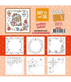 Kit pour avec matériel pour 4 cartes Dot & Do. Contient 4 patrons avec des motifs pré-imprimés 13.5 x 27 cm, 4 cartes simples 13.5 x 13.5 cm, 2 feuilles 3D prédécoupées et 3 stickers. Format A4. Découvrez les Dot and Do grâce à notre vidéo.