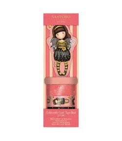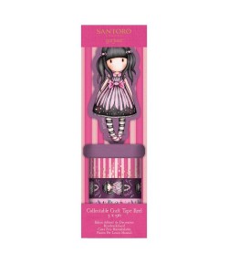 Lot de 3 rouleaux de masking tape de 5 mètres chacun et support décoré Gorjuss. Dimensions : environ 15 cm.