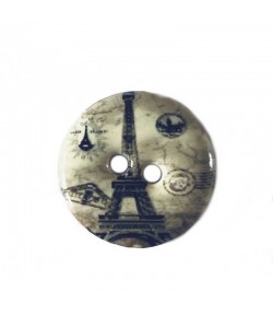 Bouton en bois coloré. 2 trous. Dimensions : environ 1.9 cm.