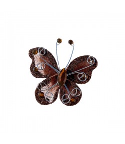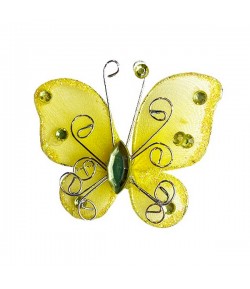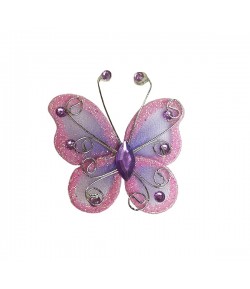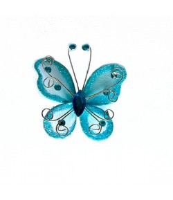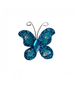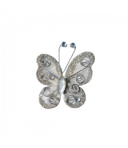 Embellissement papillon avec touches pailletées, fil alu argenté et strass. Dimensions : environ 5 cm.
