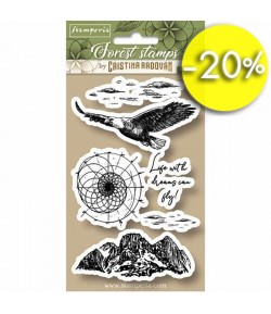 7 Tampons en caoutchouc Haute Définition. A utiliser avec un bloc acrylique. Collection SAVANA by Cristina RADOVAN de STAMPERIA. WTKCC211 Dimensions de la planche : 14 x 18 cm