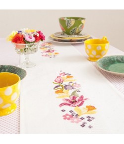 Kit contenant : bande Lin 11 fils à broder 100% Coton, aiguille à broder, fils moulinés, ruban et graphique avec les instructions. Dimensions : Bande 10 x 152 cm