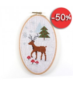Kit contenant : Coupon Aida 5.4 à broder 100% Coton, aiguille à broder, fils moulinés, cadre en feutrine et graphique avec les instructions. Dimensions : Aida 20 x 20 cm - Cadre Feutrine 10.5 x 13.7 cm