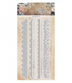 5 Dies bordures en métal pour toutes les machines de découpe (Big shot, Cuttlebug, PressBoss Pro...). CDECD0104 Dimensions : Entre 0.5 - 1 et 2 x 21 cm Collection CARD DECO ESSENTIALS - SLIMLINE