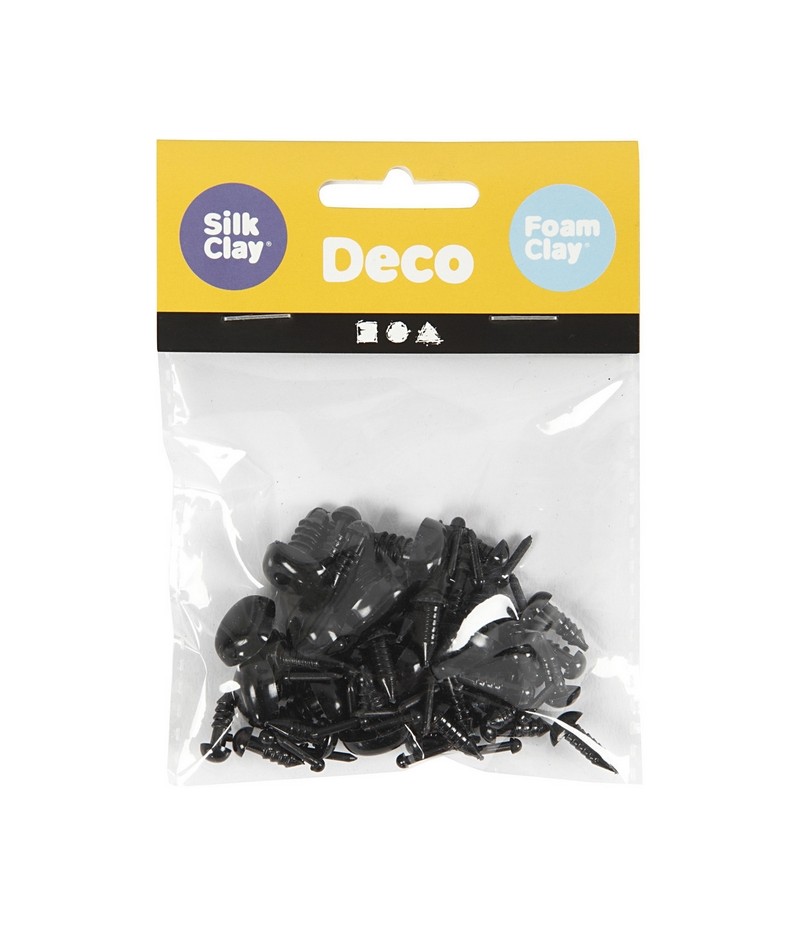 Assortiment de yeux et nez pour toutes sortes de pâtes à modeler auto-durcissantes comme la pâte Foam ou Silk Clay.