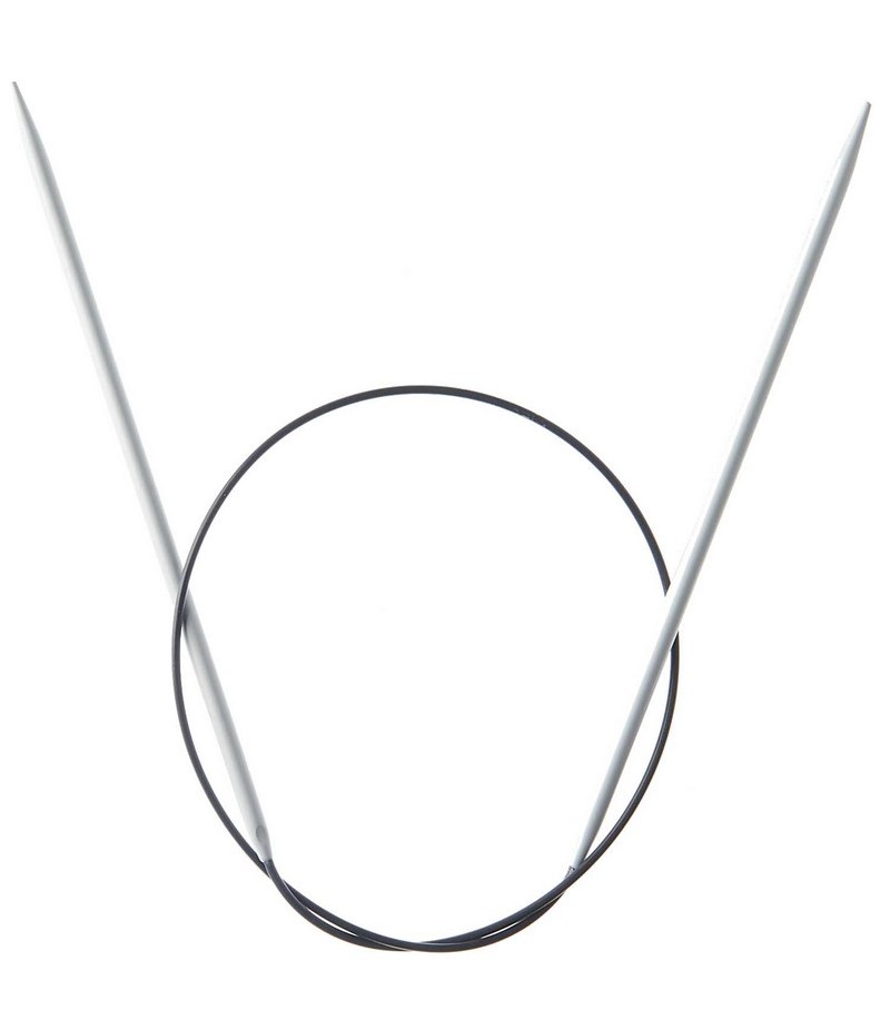 Aiguilles circulaires n° 4. En Aluminium reliées par un fil de plastique.