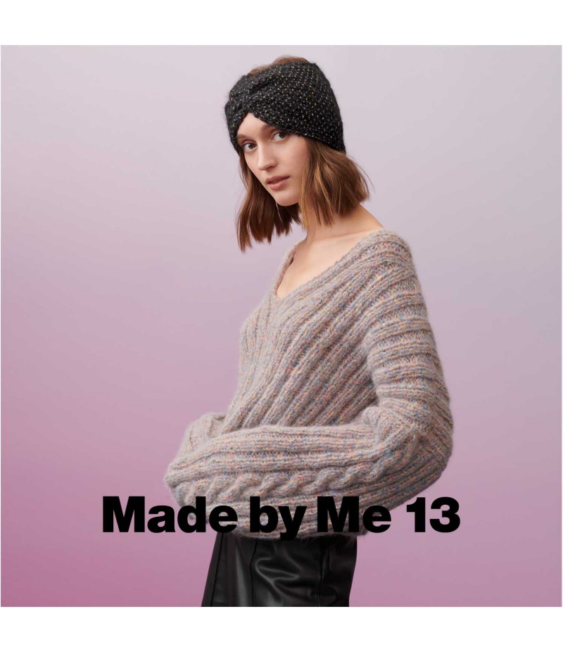 Echantillon 10 x 10 cm : 12 mailles et 18 rangs. Prévoir environ 500g pour un pull taille 40.