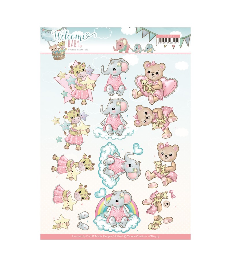 Feuille de découpage en 3D étape par étape pour réaliser de jolies cartes.