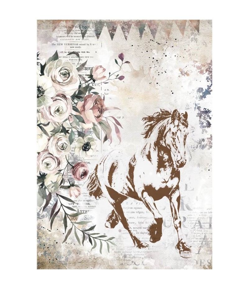 Papier de riz imprimé A4 - 21 x 29.7 cm - Collection ROMANTIC HORSES de STAMPERIA - DFSA4579