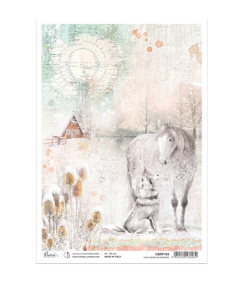 Papier de riz imprimé Ciao Bella 21 x 29.7 cm. Collection THE GIFT OF LOVE.