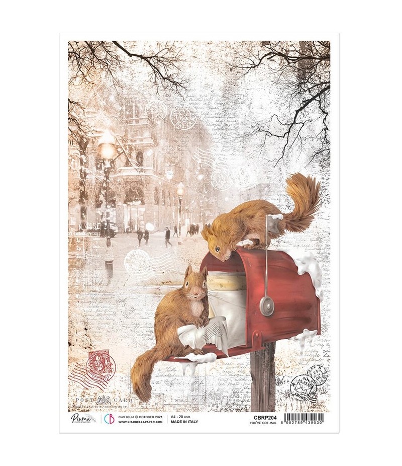 Papier de riz imprimé Ciao Bella 21 x 29.7 cm. Collection MEMORIES OF A SNOWY DAY.