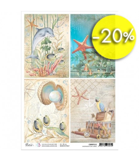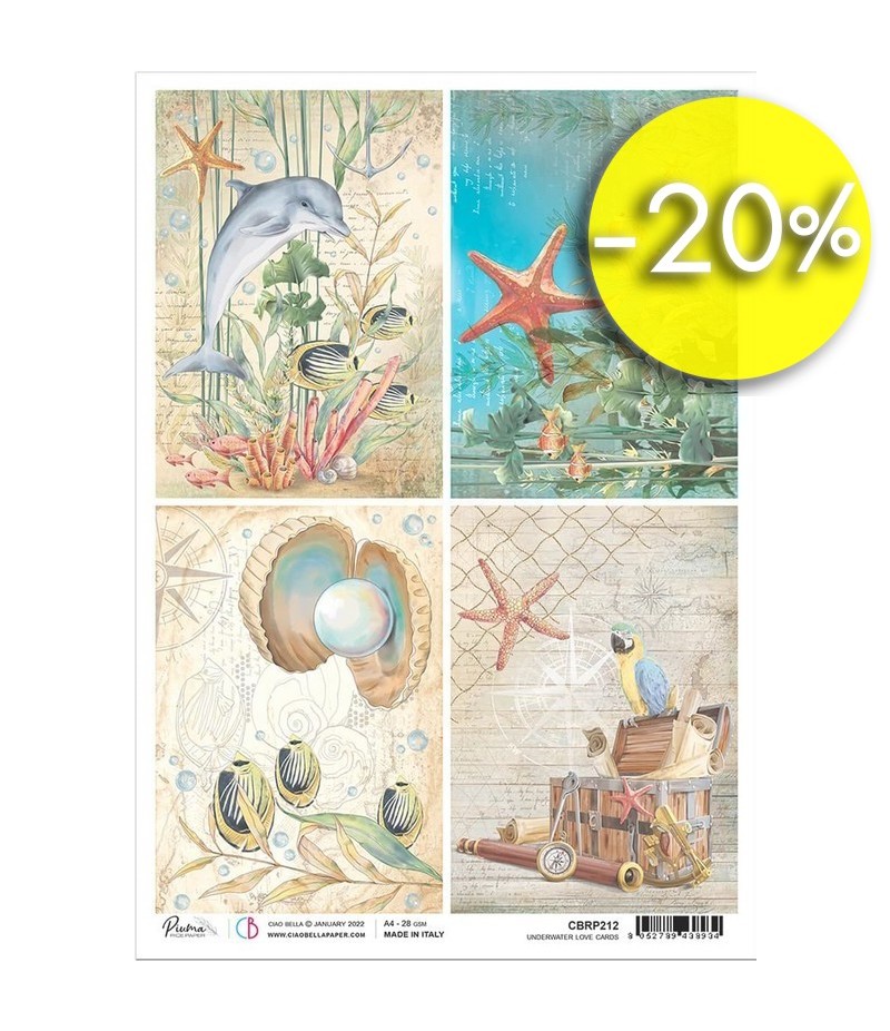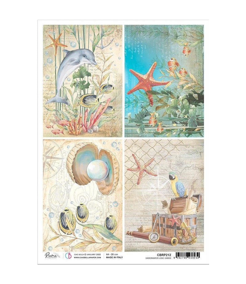 Papier de riz imprimé Ciao Bella 21 x 29.7 cm. Collection UNDERWATER LOVE.