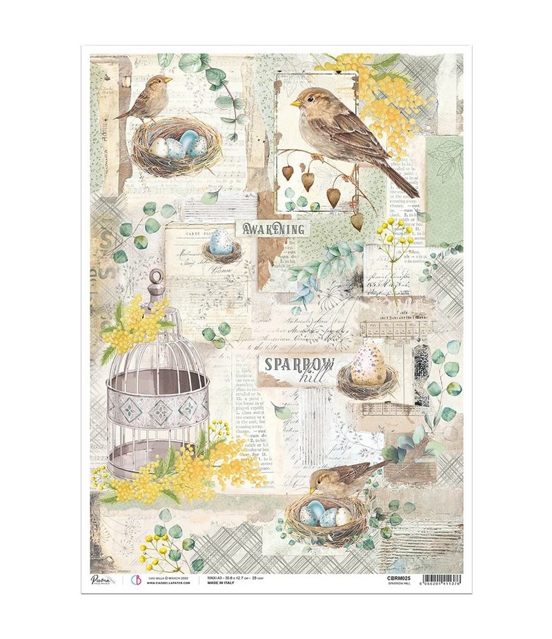 Papier de riz imprimé A3 - 30.7 x 42.7 cm - Nouveau Format CIAO BELLA - CBRM025.
