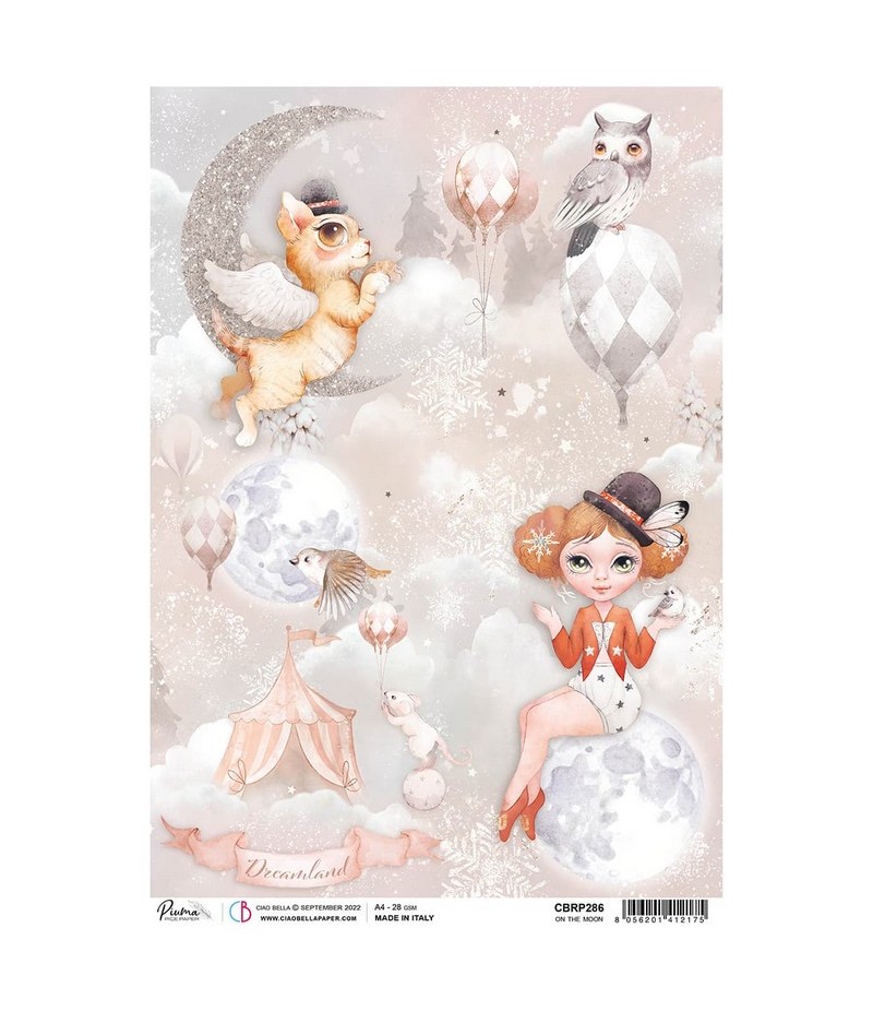 Papier de riz imprimé Ciao Bella 21 x 29.7 cm. Collection DREAMLAND.