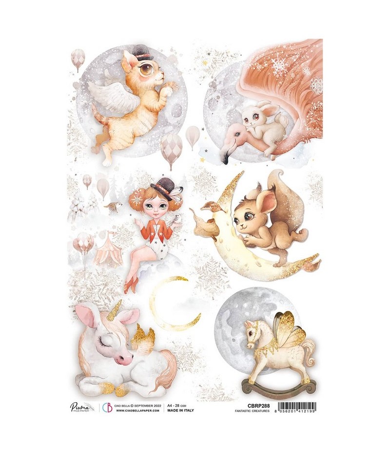 Papier de riz imprimé Ciao Bella 21 x 29.7 cm. Collection DREAMLAND.