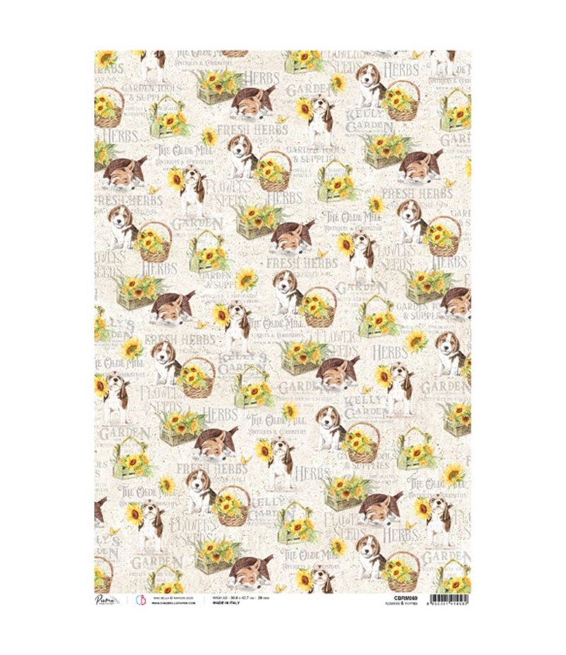 Papier de riz imprimé A3 - 30.7 x 42.7 cm - Nouveau Format CIAO BELLA - Collection FARMHOUSE GARDEN - CBRM069 .